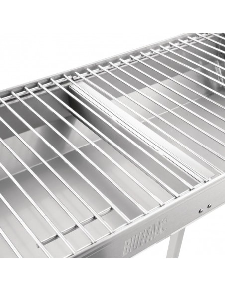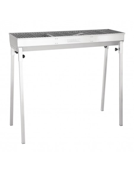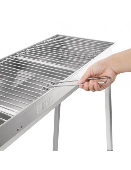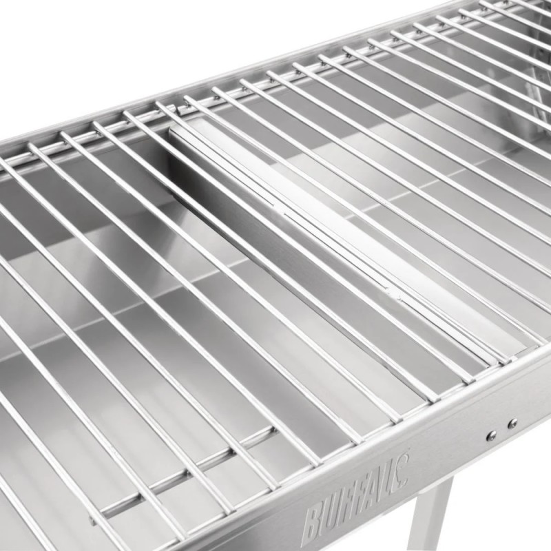 Strong, durable and stylish, the Buffalo charcoal barbecue is the perfect outdoor solution for producing distinctively smoky BBQ flavours when grilling favourites like burgers, chicken and skewers. With the large cooking area, there's plenty of space to cook for a wide variety of tastes and dietary requirements. And once service is over, the barbecue is simple to disassemble and transport too, making the Buffalo BBQ a fantastic solution for mobile, event or home catering. Easy to use, clean and maintain.