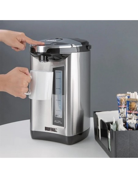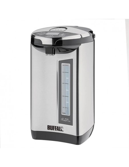 With its generous 4.7 litre capacity and simple fuss-free controls, the Buffalo electric airpot is a fantastic solution for providing hot water in areas where a regular kettle just isn't enough. Incredibly easy to use, the airpot quickly heats up to the desired temperature and safely keeps the water ready to dispense at the touch of a button. The handy carry handle ensures the airpot is easy to transport to where it's needed most, so there's always piping hot water available for teas and coffees - perfect for staff rooms, meeting areas, or small village/church halls.