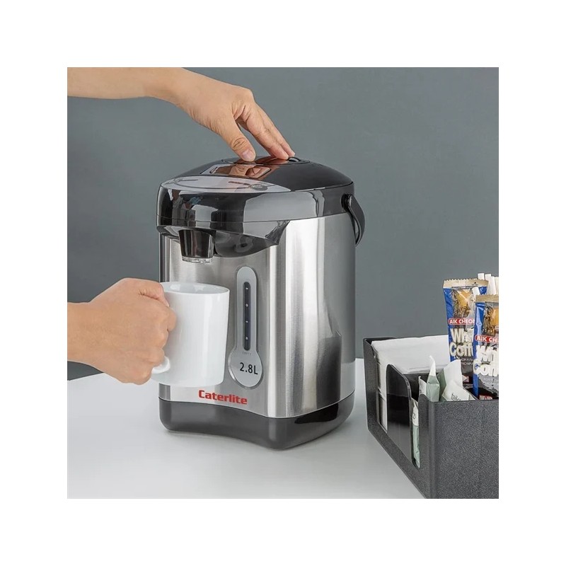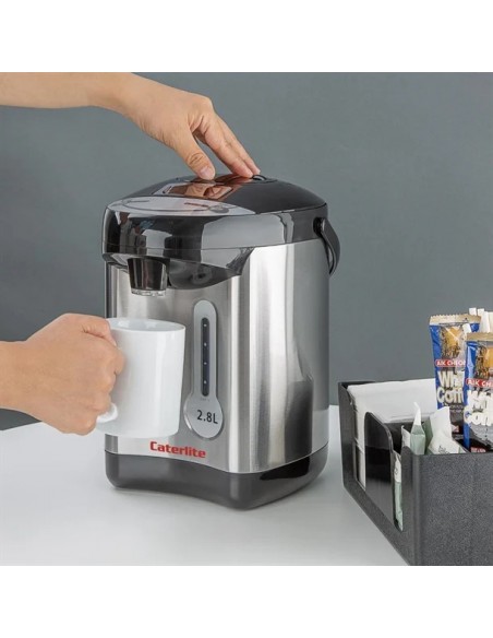 If you're looking for instant access to piping hot water at the touch of a button, the Caterlite electric airpot is a fantastic choice. Designed to be easy to use and lightweight, the airpot is incredibly simple to set up for whatever event you have planned. With its generous 2.8 litre capacity, the airpot offers ample access to water for staff rooms, meeting areas and B&B breakfast buffet services. And thanks to the front-mounted water gauge, you'll always know when a refill might be needed. A great option for areas where access to a mains water supply is limited.