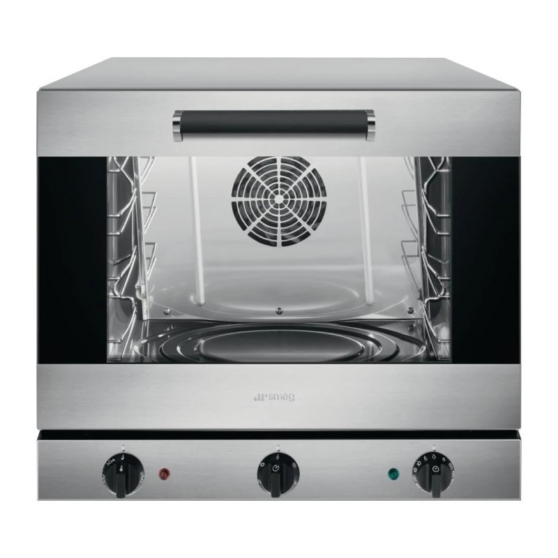 Smeg professional stainless steel multifunction convection oven with dual speed fan offering static or fan assisted oven cooking and static or fan assisted grill functions. Ideal for various applications such as bakery, patisserie and QSR sites. 4 shelf taking 435 x 320mm shelves. 13amp supply.