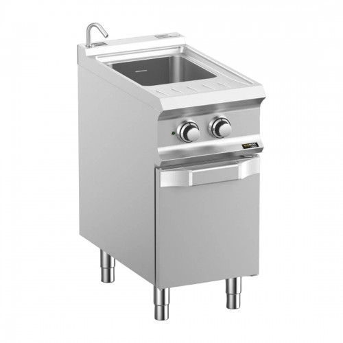 26ltr Electric pasta cooker with moulded tanks are in AISI 316 anti-corrosion stainless steel, with rounded corners for easy cleaning.