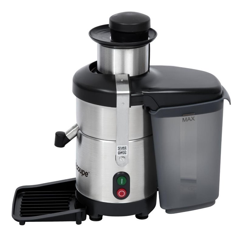 A 6.5Ltr capacity container slots neatly under the ejector spout to avoid pulp splashing onto the worktop when in use. Also, the drip tray helps to keep the work area clean by catching any juice from the spout. The 162mm spout can easily hold cups and glasses comfortably beneath, making this Robot Coupe juicer easy to use for direct juicing. The removable centrifugal juicer basket, drip tray, container, and bowl make it quick to wash, so you can keep the juicer hygienically clean for the next use.
