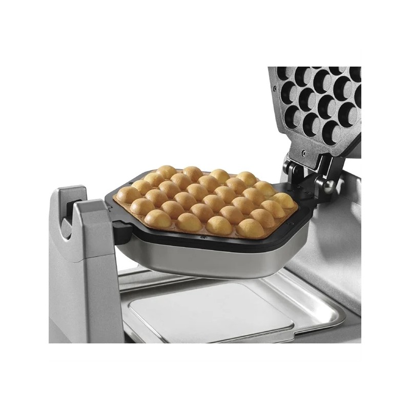 Bring the wildly popular Hong Kong-style street treat to your menu. Designed with heavy-duty die-cast housing, this innovative unit bakes up to 25 bubble waffles per hour with a rotary feature that ensures even baking and browning. Triple-coated nonstick plates make them easy to release, leaving them perfectly formed and ready to be filled with ice cream, or served flat with sweet or savory toppings. An audible beep alerts users when to cook and when to serve. Cleanups are quick and easy with the removable, dishwasher-safe drip tray.