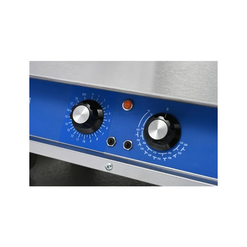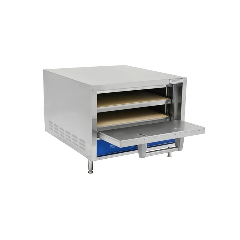 Countertop twin deck oven with cordierite decks perfect for fresh-dough pizza, prebaked crust, pretzels, flatbreads, and other bakery products.