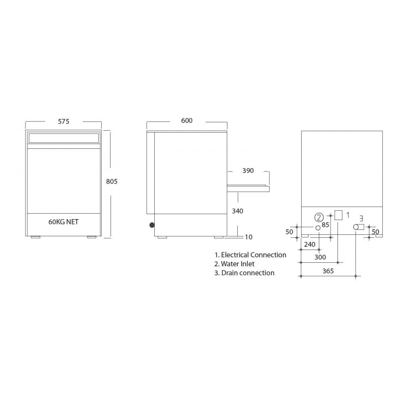 - Dimensions: 805(H) x 575(W) x 600(D)mm