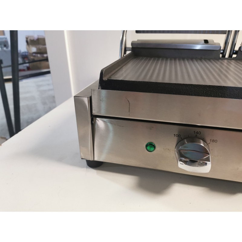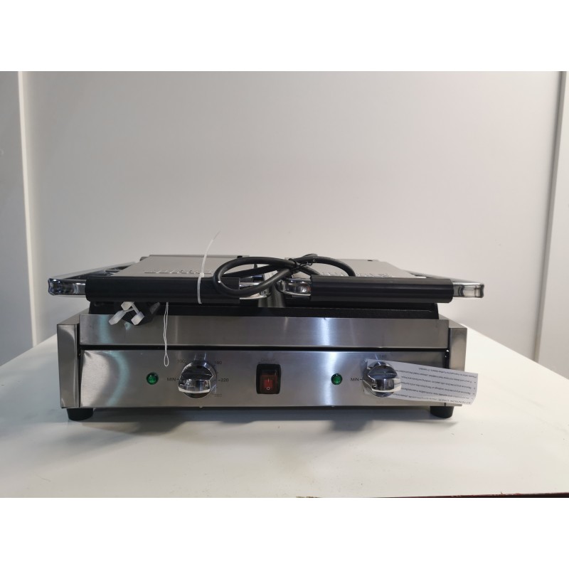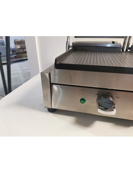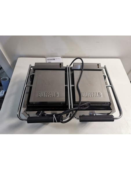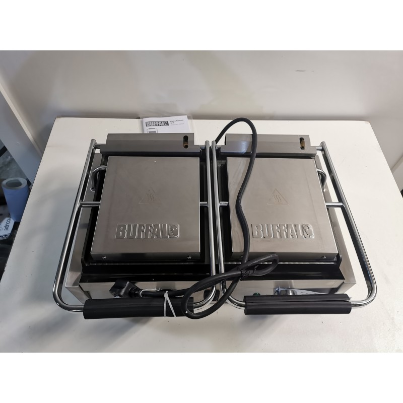Great for busy hotels and restaurants this heavy duty single contact grill from Buffalo is fast to heat up and has variable temperature control for maximum functionality so is ideal for cooking burgers steaks and paninis. Robustly designed it has cast iron plates and a satin stainless steel finish (scratch-resistant) to ensure long-term use. The addition of a programmable timer and audible alarm then makes monitoring cooking in a busy kitchen much easier.