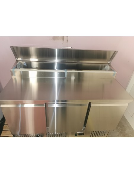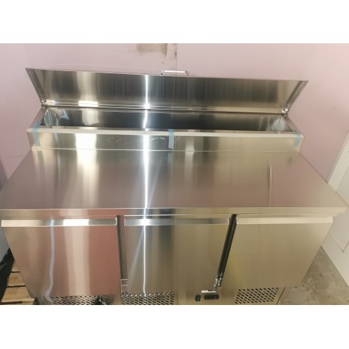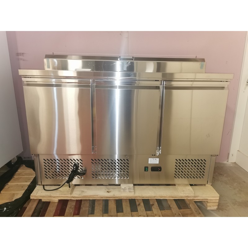 This top quality Ice-A-Cool ICE3853GR refrigerated pizza prep counter is designed to give outstanding performance day after day in all, busy catering establishments. With 3 x doors, this gives improved storage over the ever popular PS200 - 2 door model. Ideal for restaurants, bakers, butchers, deli shops, sandwich bars, supermarkets etc. It is built of top quality stainless steel and will give a high level of performance, reliability, style and outstanding value for money.