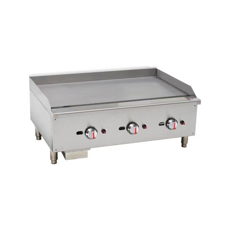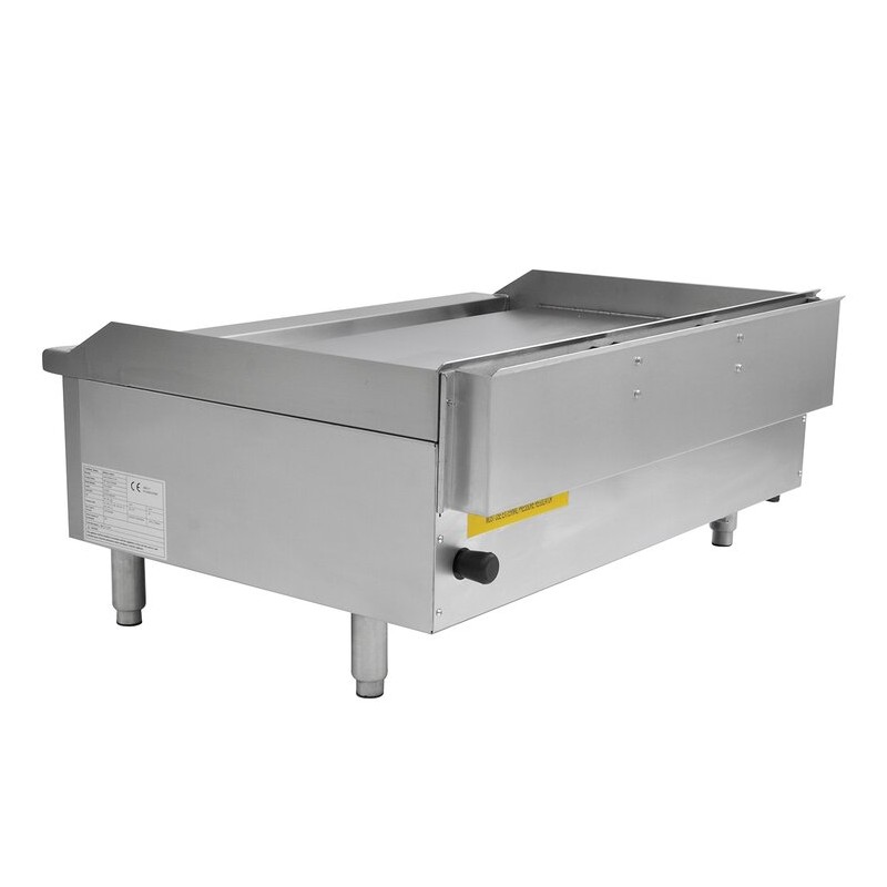 This Gas Countertop Griddle is gas powered. Made of solid, thick machined steel plate which ensures even heat distribution which has excellent heat retention.