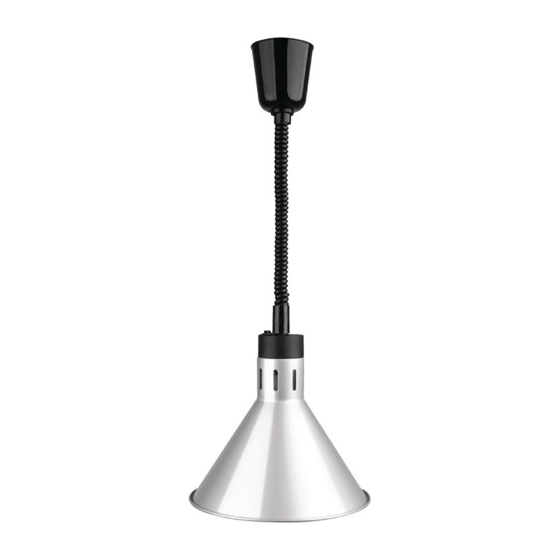 With its modern front-of-house style and durable construction, the Buffalo conical retractable heat shade is a reliable solution for hot holding food, whether on a pass or at a self-service buffet station. Finished with an attractive silver colour, the heat shade contrasts well with many decors and can easily be adjusted to sit at the perfect height to keep food warm under its gentle heat bulbs. When not in use, the light can easily be switched off to save energy. Easy to use, clean and maintain.