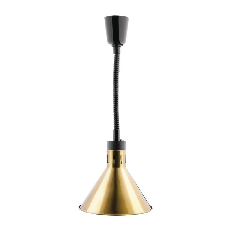 With its contemporary front-of-house design and commercial construction, the Buffalo conical retractable heat shade is a superb solution for hot holding dishes, whether on a pass or at a self-service buffet station. Finished with a premium pale gold colour, the heat shade contrasts well with modern decors and can quickly be height adjusted to keep ready-to-serve food warm under its gentle heat bulbs. When not in use, the light can easily be switched off to save energy. Easy to use, clean and maintain.