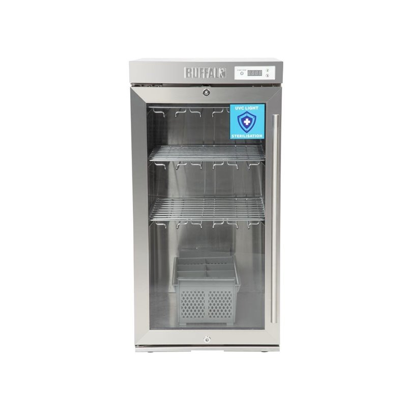 The Buffalo UVC cabinet is incredibly easy to use - simply place the items inside using the included glass racks or cutlery basket and set the timer. The unit then effectively sterilises the contents within 30 minutes, making them ready to use again quickly. No mess, no fuss. Just scientifically proven technology, used by the healthcare sector for years.