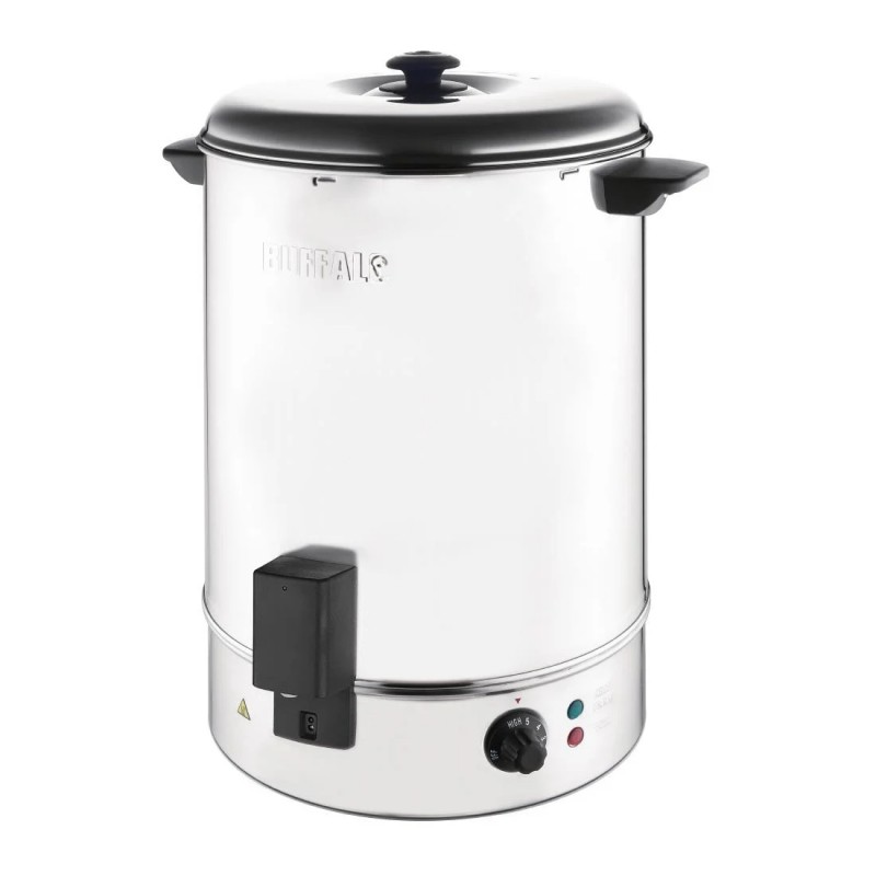Safely keep your guests, colleagues or customers drinks topped up with the 30 Ltr Buffalo manual fill water boiler. With its clever hands-free design theres no need for any skin contact with the urn, so it's much easier to promote safe, hygienic operation - simply position a cup or mug below the sensor and the boiler will dispense.