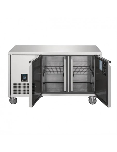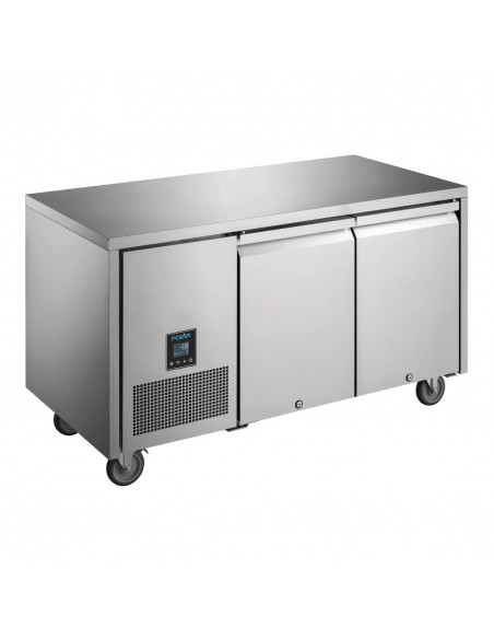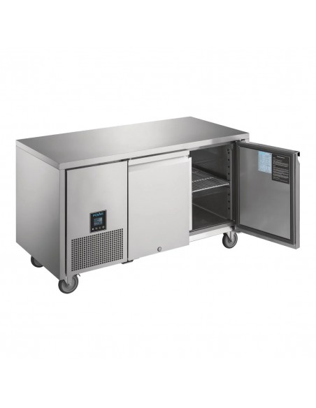 Designed to work in the high temperatures of any busy commercial kitchen, this double-door counter freezer from Polar's U-Series is sure to provide effective cooling to any medium or large kitchen. Featuring an intelligent, easy-to-use digital controller, this freezer allows you to alter settings or temperature with minimal effort. This freezer is designed with a powerful, forced-air cooling system that ensures that consistent and reliable temperatures are maintained around the entire freezer - ensuring all food is effectively preserved.