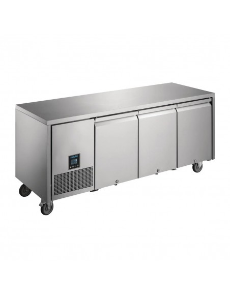 Designed with a 2-in-1 construction, this triple-door counter freezer from Polar's Premium U-Series is the perfect addition to any medium or large kitchen. The freezer is made with an intelligent, easy-to-use digital controller that allows you to change temperature settings with minimal effort. The freezer is designed with a powerful, forced-air cooling system that provides effective and reliable cooling to keep your produce at their ideal temperature - ensuring maximum hygiene. With 307 litres of usable storage, this freezer allows you to store large amounts of produce that can be quickly prepared with thanks to the stainless-steel counter - reducing the amount of time you spend moving around the kitchen.