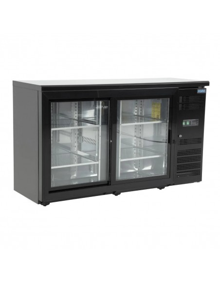 The two sliding glass doors not only allow for quick access to the drinks your guests want, but also help to save space and improve safety behind your bar. With a black exterior and durable and easy-to-clean construction, this fridge is ideal for use in any busy bar, cafe or pub.