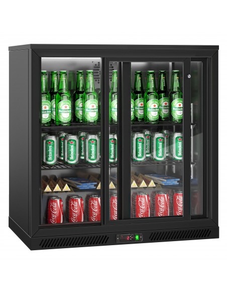 Double Sliding Door Back Bar Cooler Beer Fridge 240 Litres Black 900 x 505 x 895