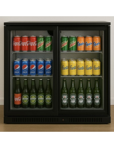 Make the most of your drink storage and display with the Back Bar Cooler with 2 Sliding Doors. This cooler is essential for bars, restaurants, cafés, and event spaces. This 220-litre black undercounter bottle fridge offers great cooling, stylish looks, and smart design. It keeps your drinks cold and ready to serve. With its compact size, energy efficiency, and optimized storage, this cooler is your ultimate beverage solution.
