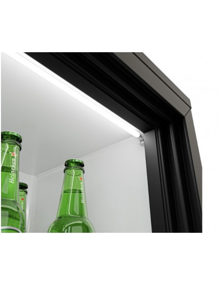 Maintain optimal temperatures to serve beverages at their best. Engineers designed this back bar cooler to keep drinks consistently chilled, boosting customer satisfaction and reducing spoilage. The sleek black finish adds a modern and professional look to your bar or restaurant. This fridge uses high-quality materials. Designers made it to handle the daily needs of a busy commercial setting.