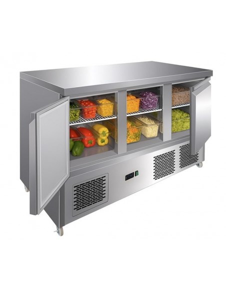 With its 368L storage capacity and three refrigerated compartments, it provides ample space for ingredients while keeping them at safe, consistent temperatures. The flat stainless steel surface also functions as a robust prep area, maximising workspace in compact kitchens.