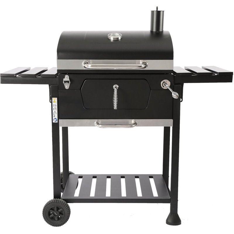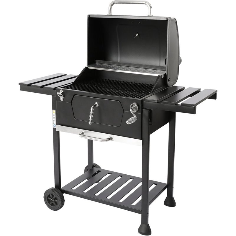 - Adjustable charcoal tray lifting mechanism.