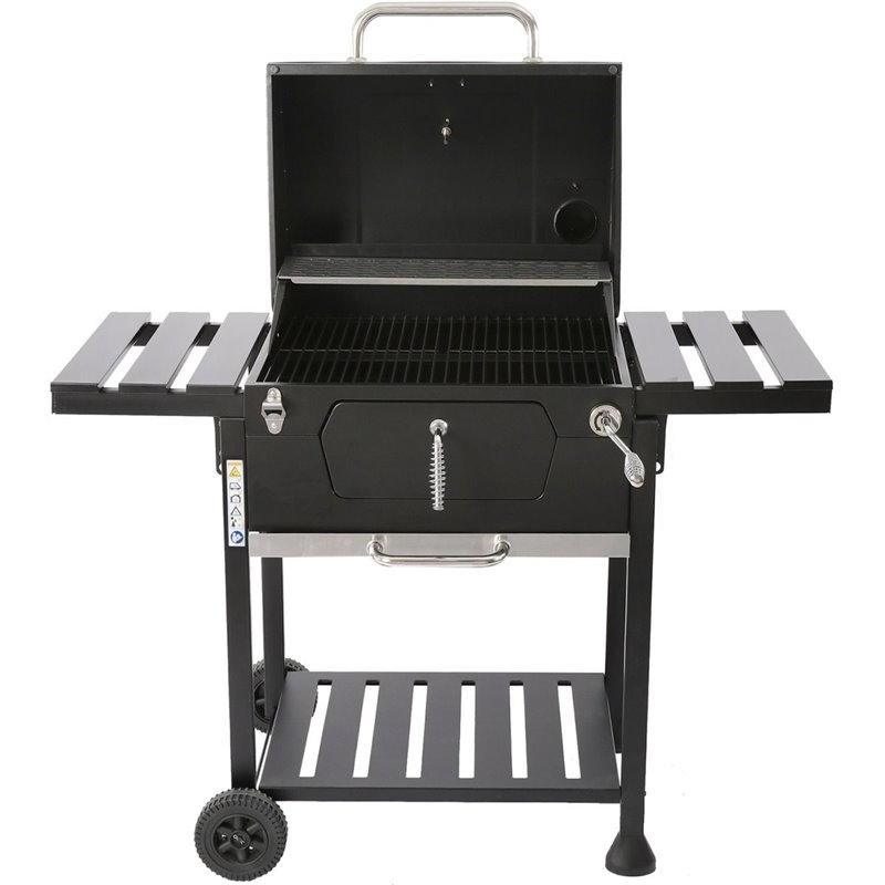 - Charcoal pan: Black powder coated steel