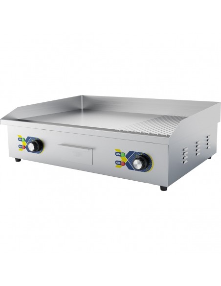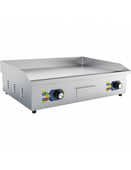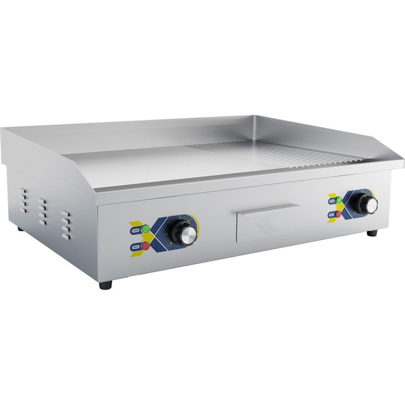 Powerful and reliable, this professional steel griddle features a generously sized steel cooking surface that is both grooved and smooth, perfect for breakfast, lunch or dinner services. The heavy duty elements ensure a rapid heat up and an even spread of heat across the wide griddle surface. With simple dial thermostat control and removable fat collection drawer, the restaurant griddle is incredibly easy to use, clean and maintain. This catering fry top is an incredible bargain at the current discount sale price.