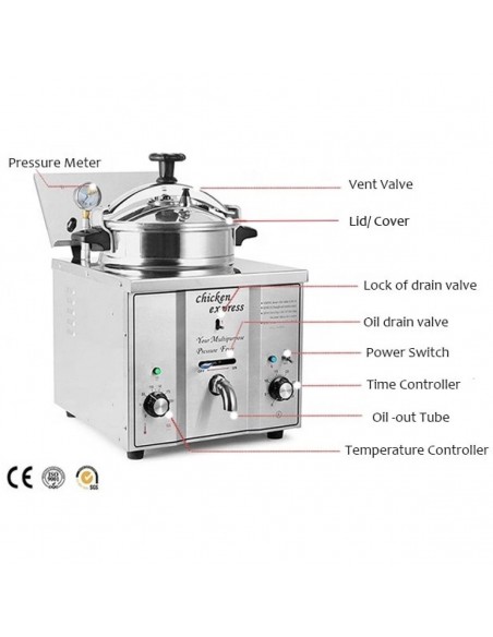 Commercial Pressure Fryer 15 litres 3kW Single-Tank