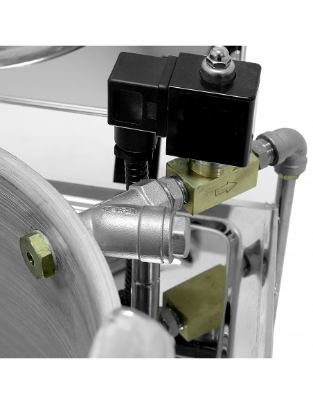The unit is built from high-quality AISI 304 stainless steel and features a robust safety lock, integrated drain valve, and compact, durable construction, making it ideal for intensive commercial use.