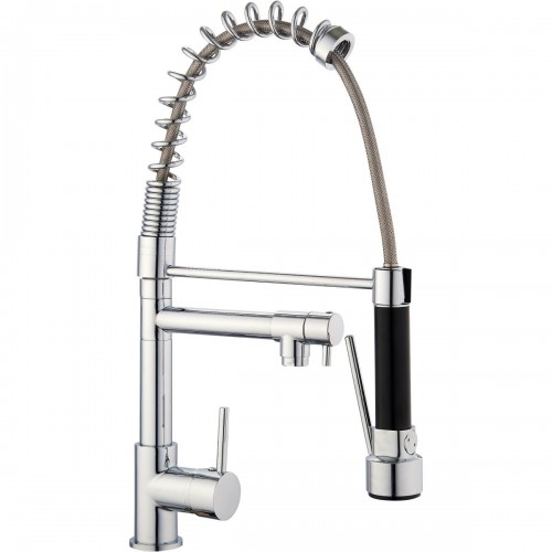 Professional pre-rinse spray ideal for food service, commercial kitchens, restaurants and hotel applications. With a spring action gooseneck.Brass bodyZinc handle 35mm ceramic cartridge Brass hand spraySS 304 G1/2 inlet flexible hose