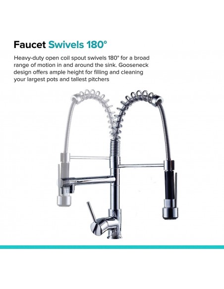 Professional pre-rinse spray ideal for food service, commercial kitchens, restaurants and hotel applications. With a spring action gooseneck.Brass bodyZinc handle 35mm ceramic cartridge Brass hand spray SS 304 G1/2 inlet flexible hose