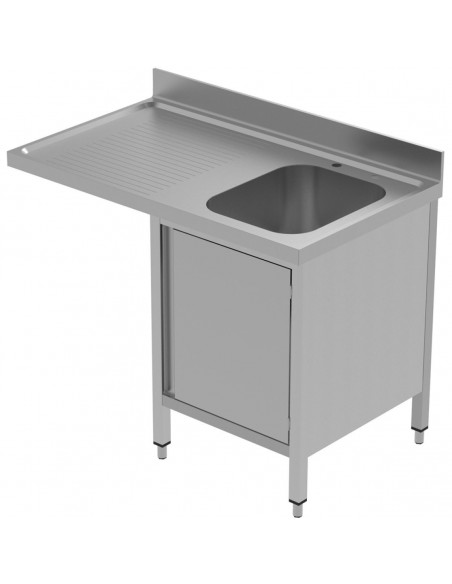 Commercial Sink for dishwashers with Cupboard 1 bowl Right Splashback 1200mm Depth 600mm | DA-VSCH126RBS