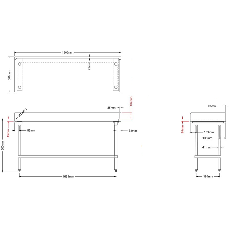 Bakery Work table Wood top 1800x600x900mm | DA-RWTG600X1800