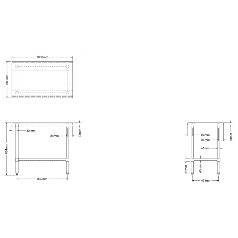 Commercial Work Table Stainless Steel Bottom Shelf 1000x600x900mm | DA-WTG600X1000