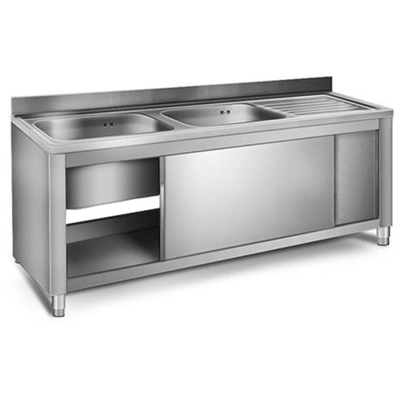 Commercial Sink with Cupboard Stainless steel 2 bowls Left Splashback Width 1800mm Depth 600mm | DA-THSSR186BL2