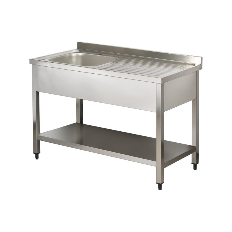 Commercial Sink Stainless steel 1 bowl Left Bottom shelf Splashback 1200mm Depth 700mm | DA-VS127LBS