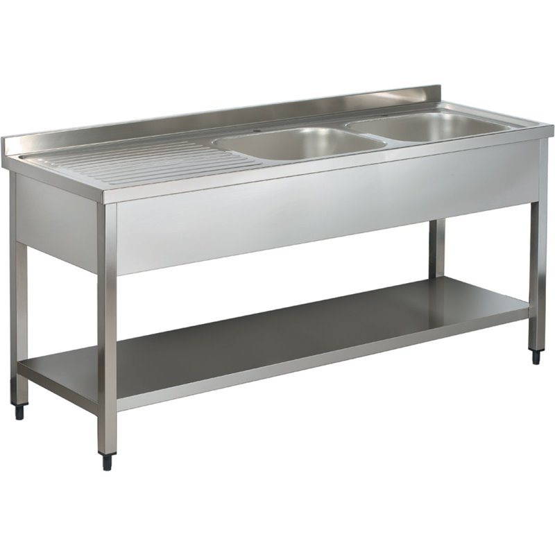 Commercial Sink Stainless steel 2 bowls Right Bottom shelf Splashback 1800mm Depth 700mm | DA-VS187RBT