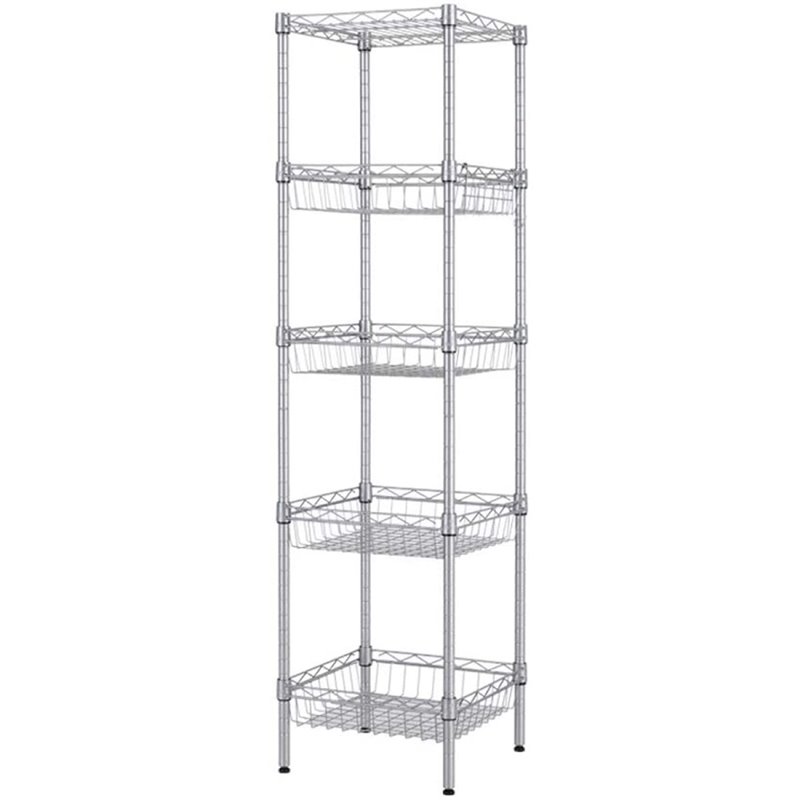 Commercial 5 Tier Basket Shelving Unit Chrome Wire 450x350x1500mm | DA-CJC1318