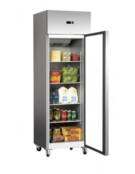 Commercial Upright Refrigerator 600L – Stainless Steel Single Door GN2/1, Fan Assisted Cooling