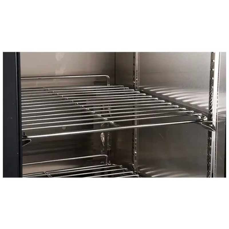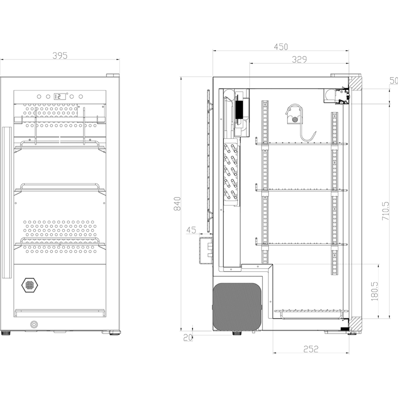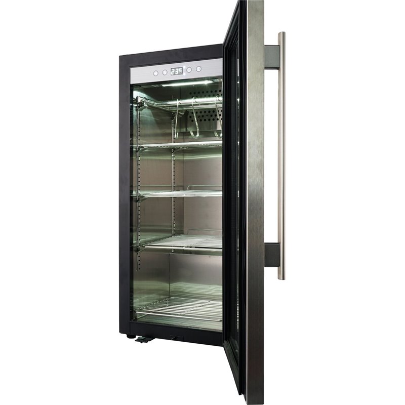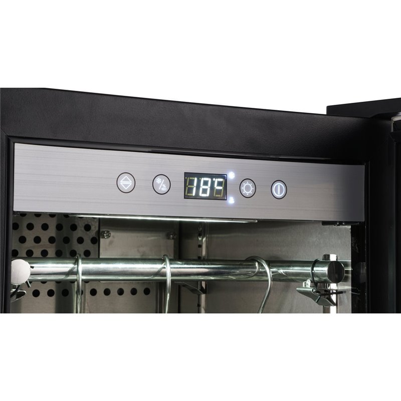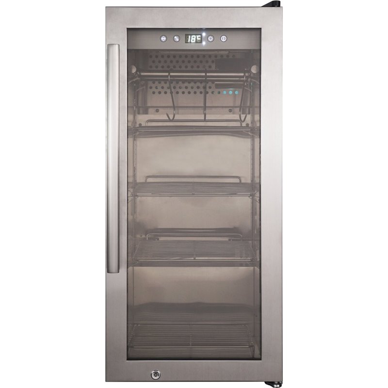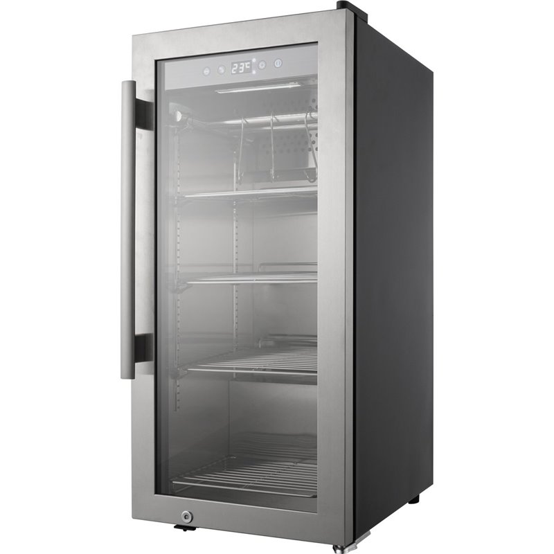 This dry age maturing cabinet is a sleek modern looking cabinet with compressor technology, essential for aging the most beautiful tasting meats. Dry aging is one of the oldest and most proven methods of refining meat. This cabinet really brings this method to your home or business without any complications and under the best conditions, you will produce perfectly aged, top quality meat. You don't need any previous knowledge to do this because the fridge takes care of the aging process for you. This is a premium plug-in, fully dry aging commercial cabinet that looks as good as it works. Meat, ham, fish, sausage, cheese, herbs, pasta, and much more can be easily aged or dried at the touch of a button