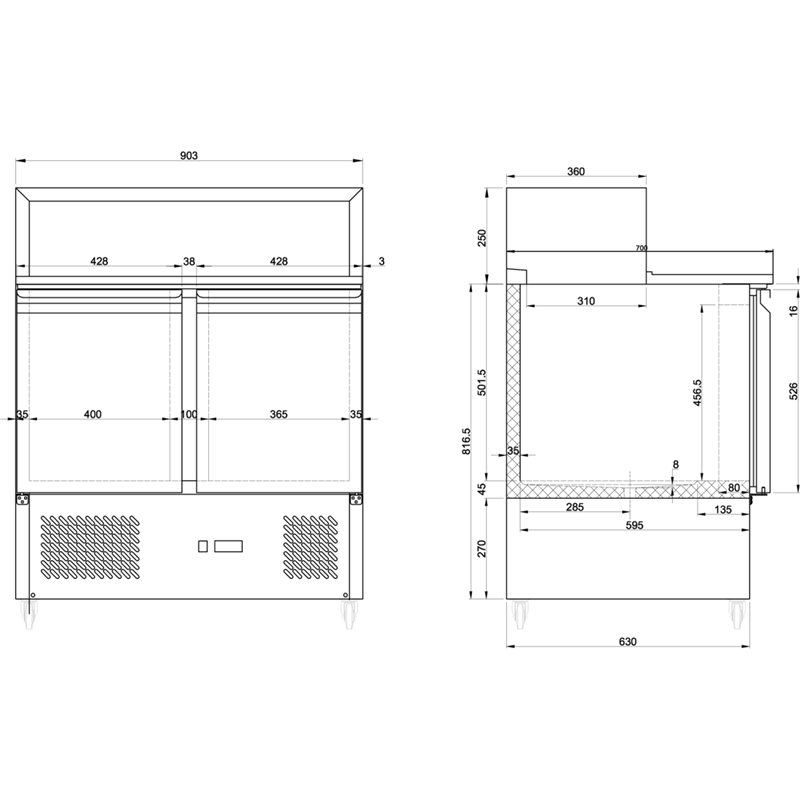 The durable granite worktop measures 900 x 340 mm, providing a sturdy and hygienic surface ideal for fast, efficient pizza preparation. Crafted from premium stainless steel, this refrigerated pizza prep counter combines durability, reliability, and style — perfect for restaurants, bakeries, butcher shops, deli counters, sandwich bars, supermarkets, and other catering establishments.