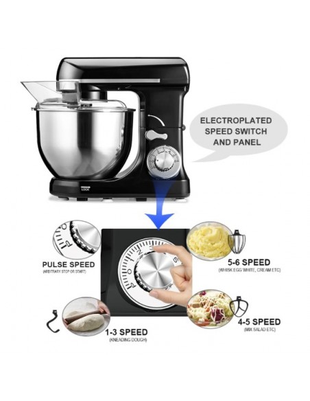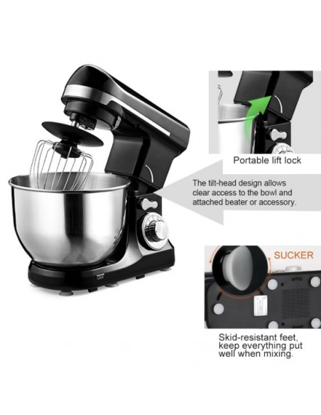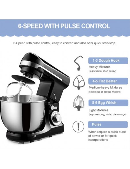 - 6 Speeds setting stand mixer, motor with PTC temperature control and full metal transmission structure, to ensure excellent working performance and can satisfy all your foodstuff mixing requirements.