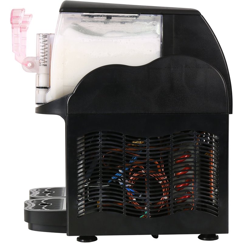 Designed with two three litre tanks, this slush machine lets you serve multiple flavours at once. The slush machine is made with a powerful cooling system that allows you to start serving drinks from as little as 40 minutes after activation - allowing you to serve guests faster. The digital display, electronic temperature and speed controls all aid in making the setting-up process easier, whilst allowing you to customise settings to serve anything from chilled drinks to ice-cold slush. Crafted from a mixture of stainless steel and APS plastic, the slush machine is highly durable and easy to clean after use. As well as this, both tanks and dispensing nozzles can be individually removed and thoroughly cleaned - helping to maintain a hygienic service.