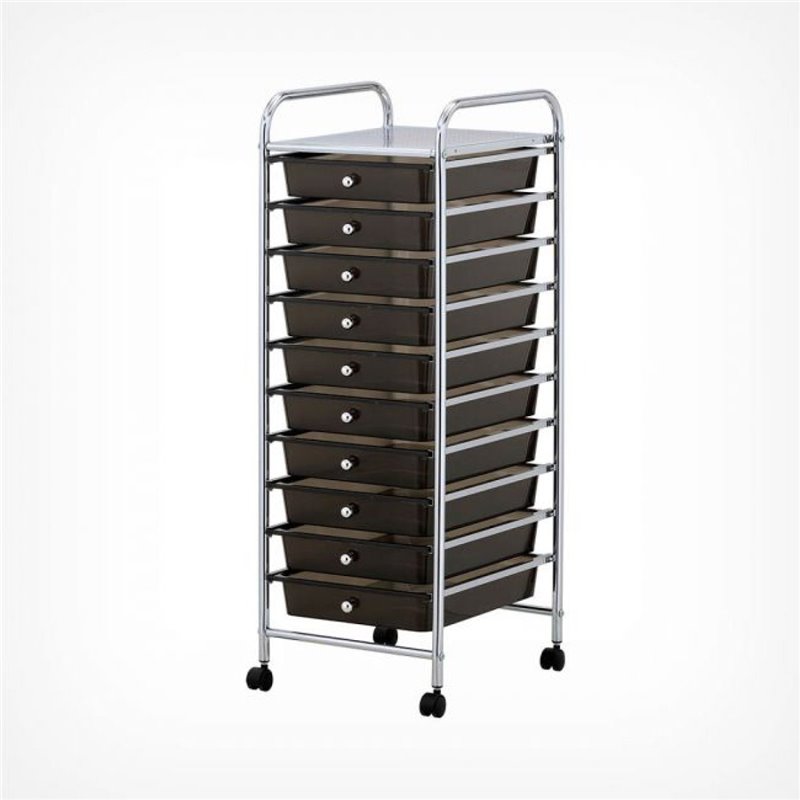 10 Drawer Mobile Storage Trolley Black & Chrome 395x390x980mm | DA-G131