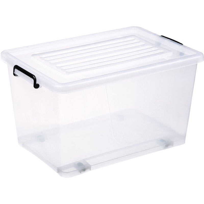 Pack of 8 Plastic Storage Box with Wheels & Lid & Clips 70 litre 630x433x355mm Polypropylene | DA-S1070