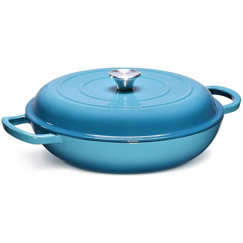 Enameled Cast iron Casserole Shallow pot Round Turquiose 31cm 2.5 litres | DA-QT3107T