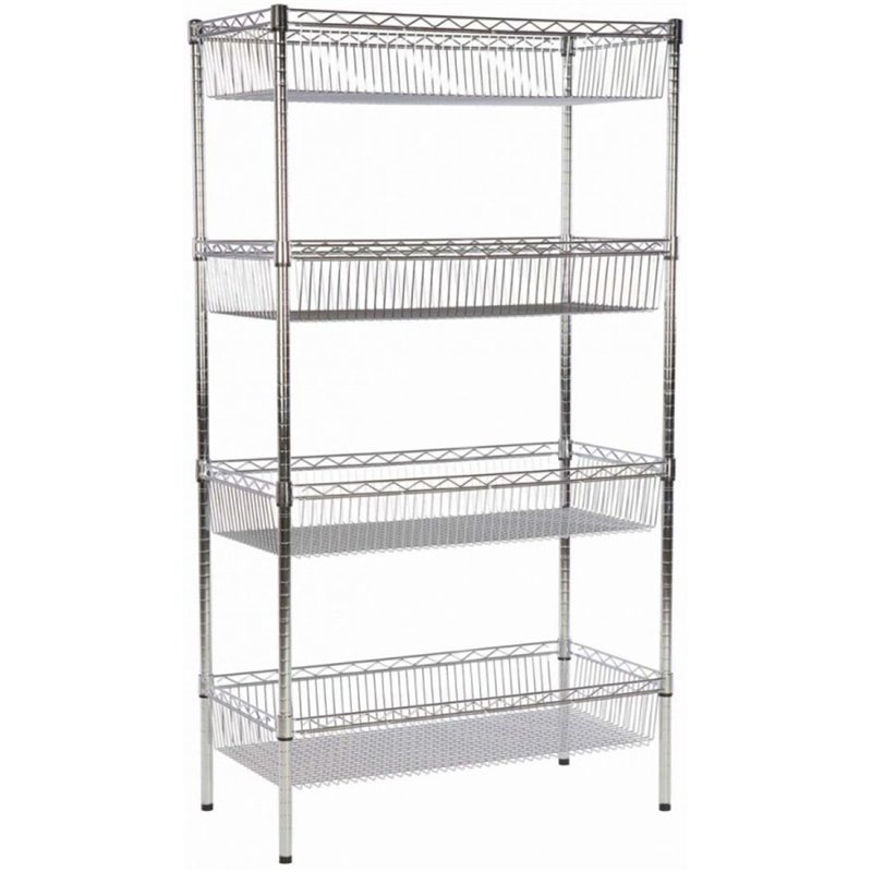 Commercial Wire Basket Shelving Unit 4 Tier 400kg 1200x450x1800mm Chrome wire | DA-WBA12045180A4C