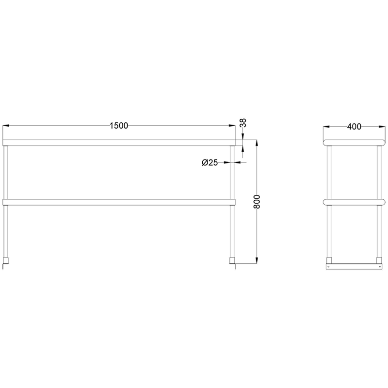 Double tier Overshelf Stainless steel 1500x400x850mm | DA-DOS400X1500