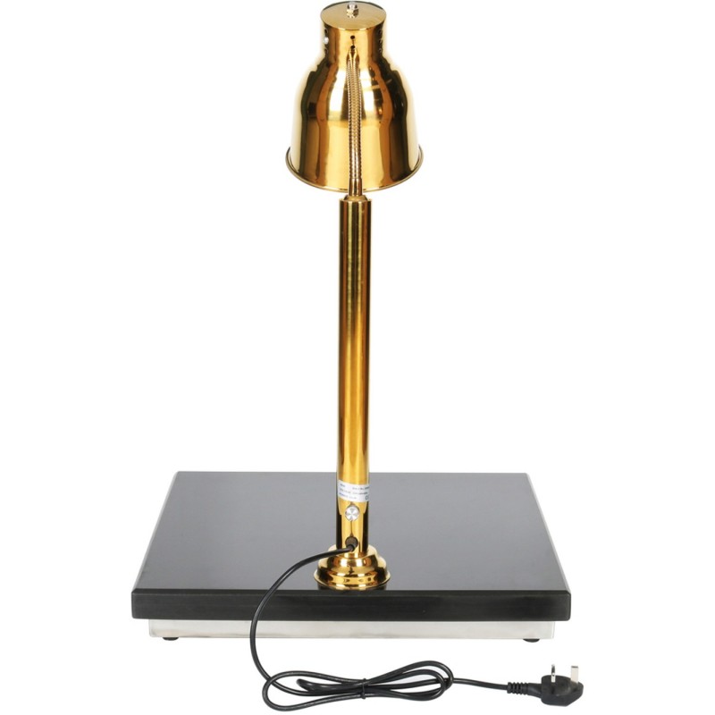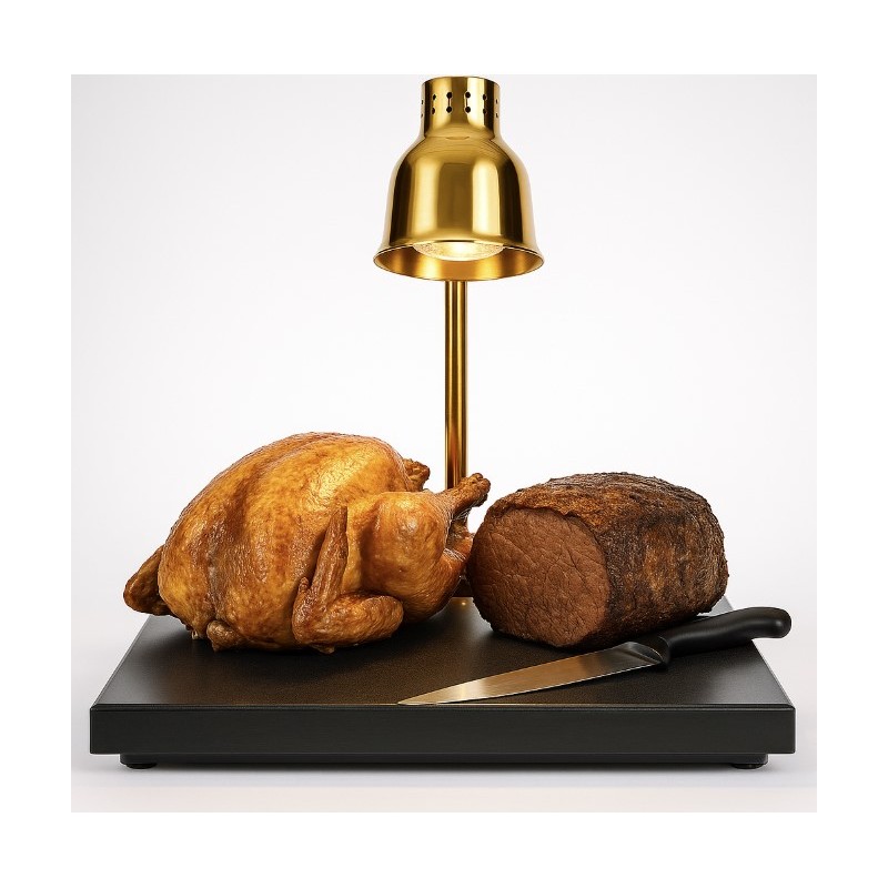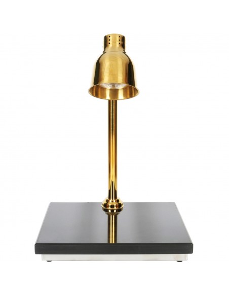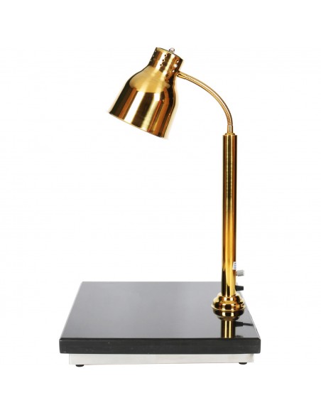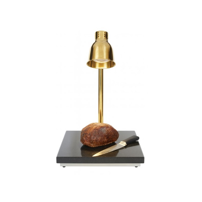 Crafted with a sleek mirror-polished stainless steel heat lamp and a robust synthetic granite base, this unit ensures exceptional heat retention, superior resistance to cracking, and a premium presentation that elevates any service environment. The adjustable lamp arm allows you to fine-tune the heat output and carving visibility, ensuring meats, roasts, breads and joints stay warm while maintaining their visual appeal.