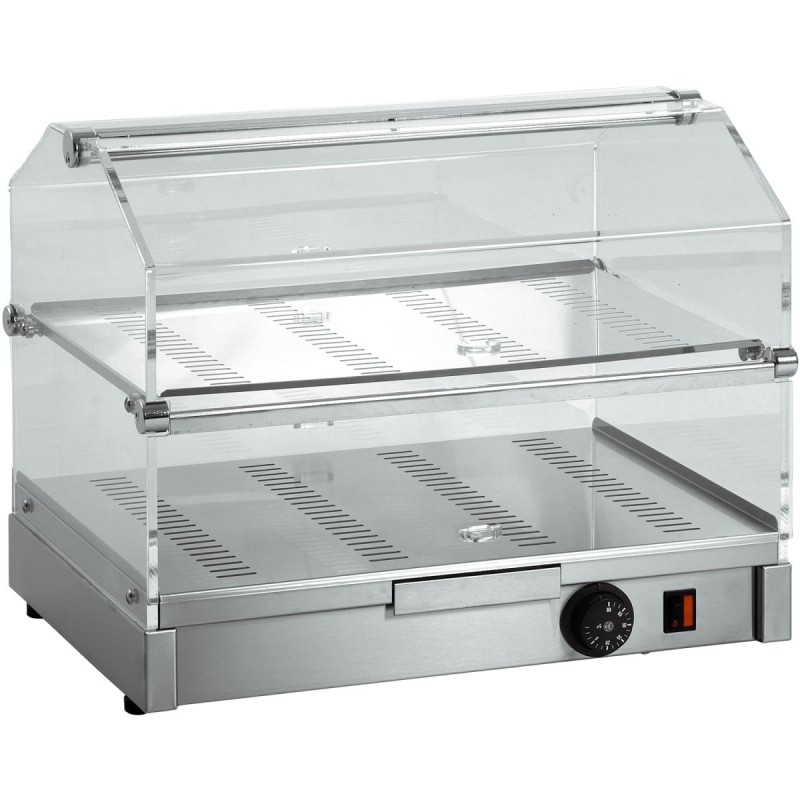 Professional Heated Showcase Display - This commercial showcase warmer is the ideal solution to the problem of limited space in a restaurant, café, shop or hotel. With a water container to keep the food moist and delicious. An efficient and practical piece of catering machinery with front and rear openings.