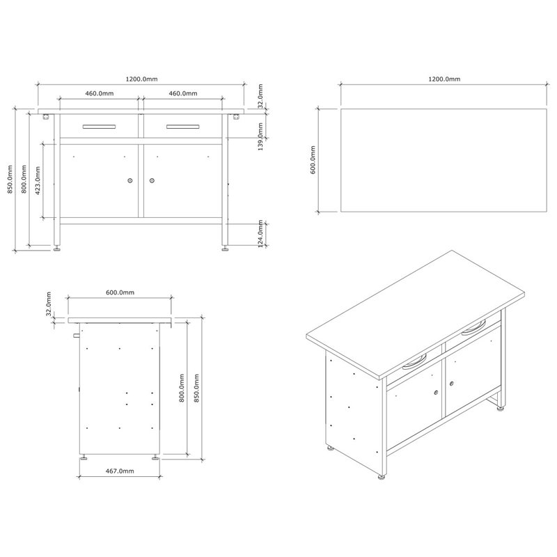 Professional Grey and Black Workshop Workbench with 30mm Wooden Desktop, Drawers and Lockable Doors 1200x600x850mm | DA-TC